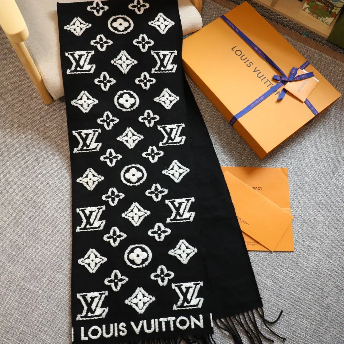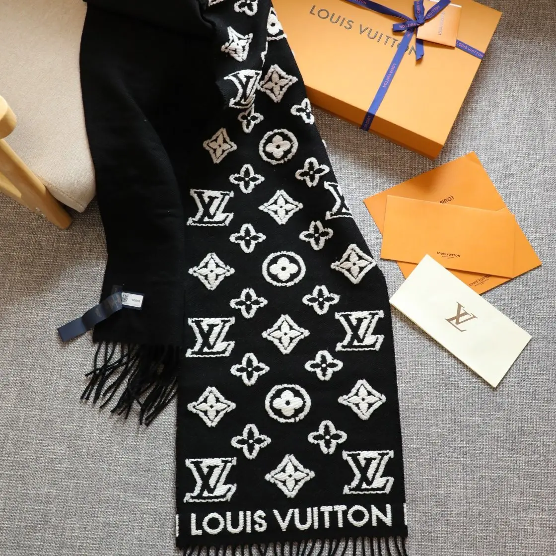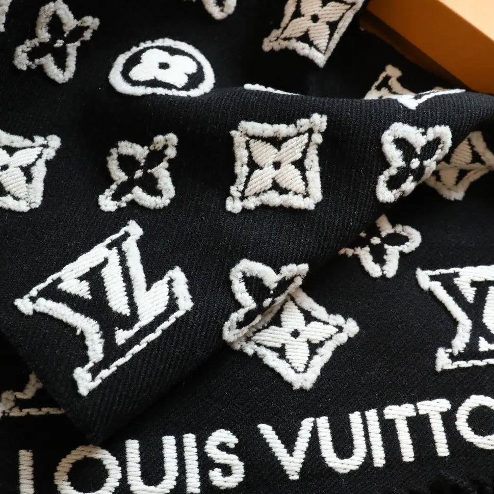 The new LV 3D scarf offers a creative variation on a classic House icon. The emblematic Monogram pattern is woven into a plush wool-cashmere blend with contrasting shearling to achieve a striking 3D effect. The sophisticated fil coupé technique is used to create subtly different surface finishes on the two sides of this on-trend, elegant scarf.