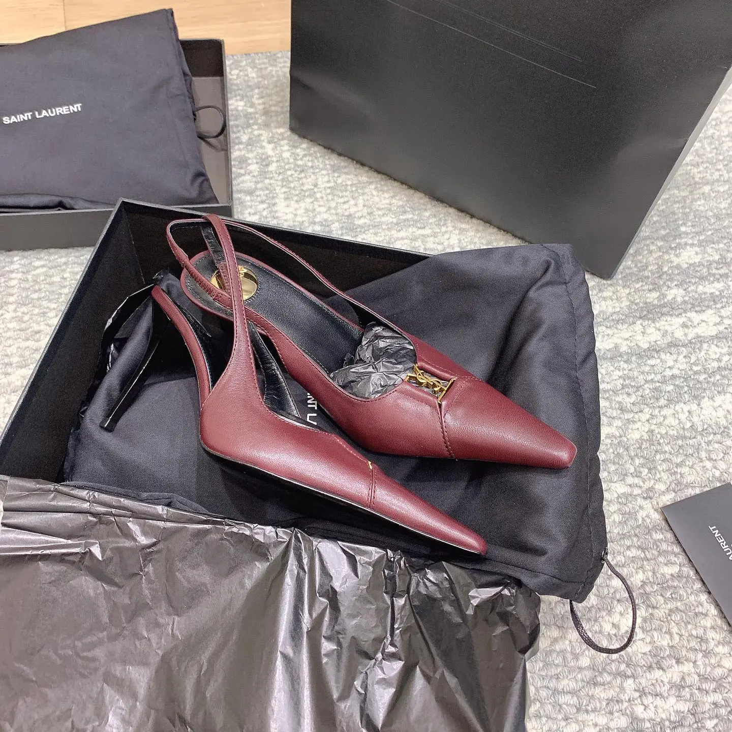 slingback pumps with a cut-out elongated toe decorated with the CASSANDRE.
